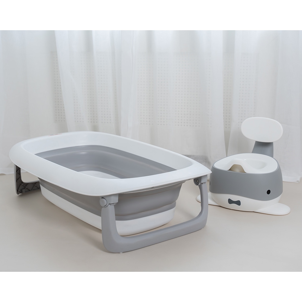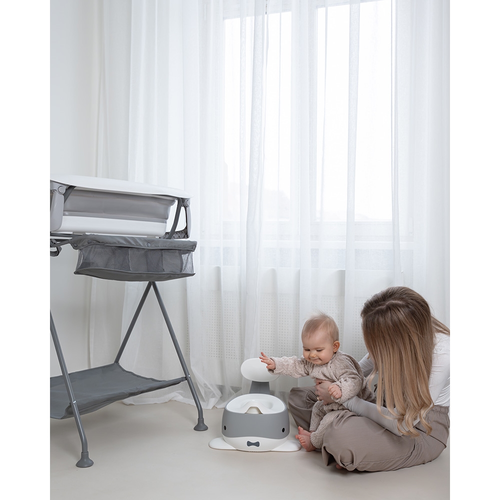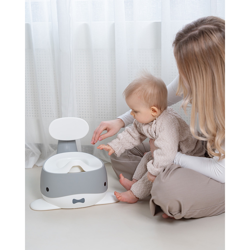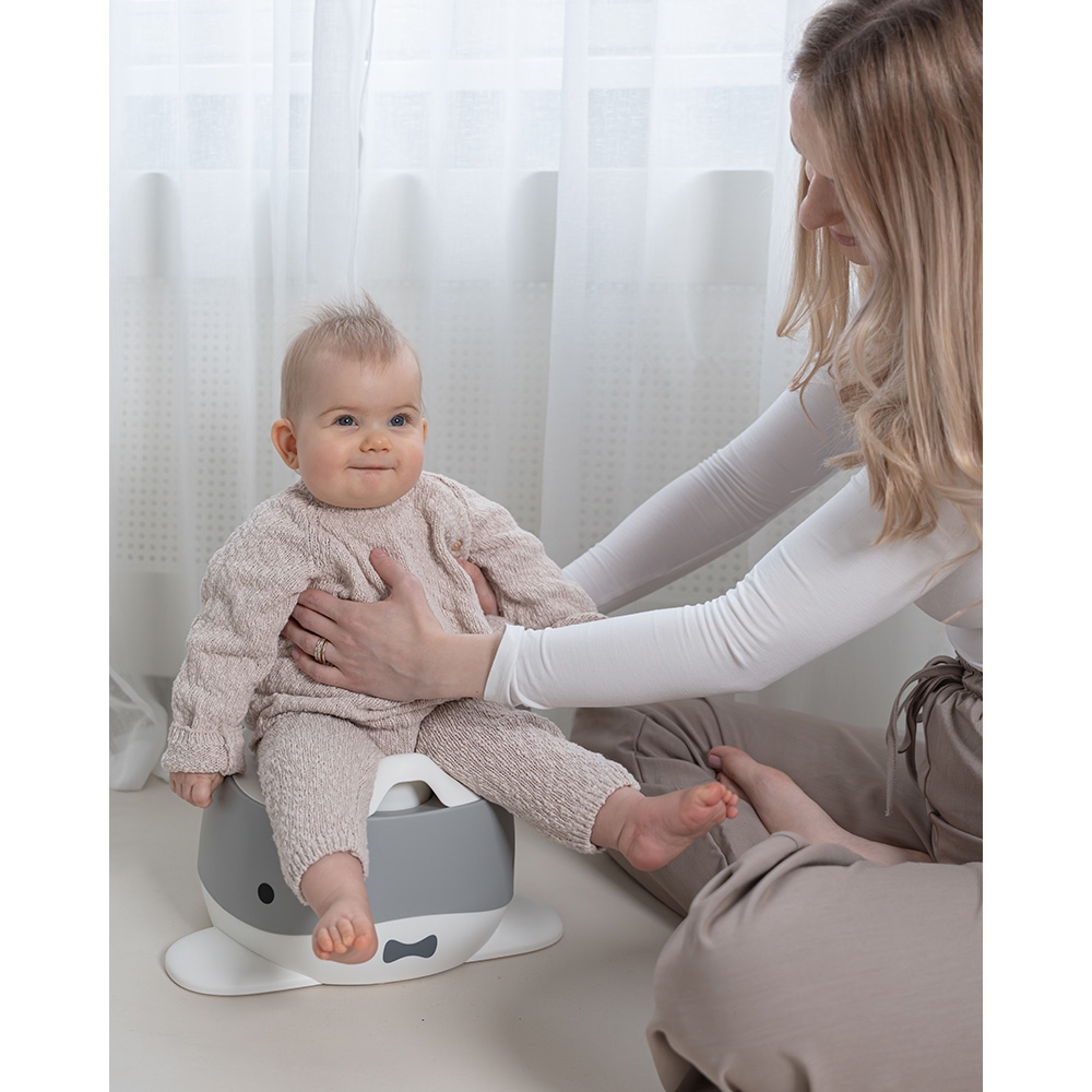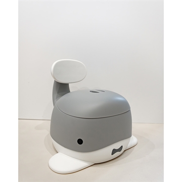 Fin lille potte træner i grå. Den er både praktiske men gør også pottetræningen underholdende for barnet.