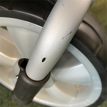 Vi har en TRILLE Quadro stående på vores lager, som har et lille mærke i håndtaget samt på den ene forgaffel på forhjulet. Derfor sælges den med 40% rabat. Da vi synes det vil være synd, hvis de små detaljer skulle være skyld i, at den aldrig bliver brugt til at skabe glæde ude i institutionen.