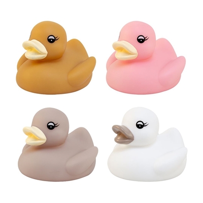 Dette sæt af 4 søde badeænder er helt perfekt til leg i badekaret, men de kan også bruges i almindelig leg, både uden- og indenfor. De 4 ænder har hver deres fine farve. Ænderne er produceret uden huller, så der ikke kan komme vand ind i dem. Dette forhindre spredning og opbygning af bakterier indeni ænderne, så dit barns bade forbliver rene og bekymringsfrie.