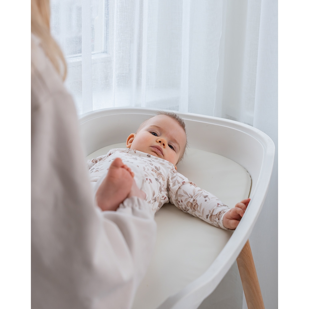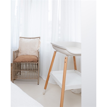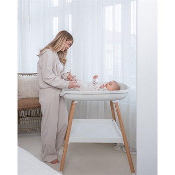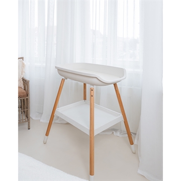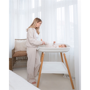 Puslebordet kommer med en hylde til opbevaring af bleer, tøj og diverse pusleting.