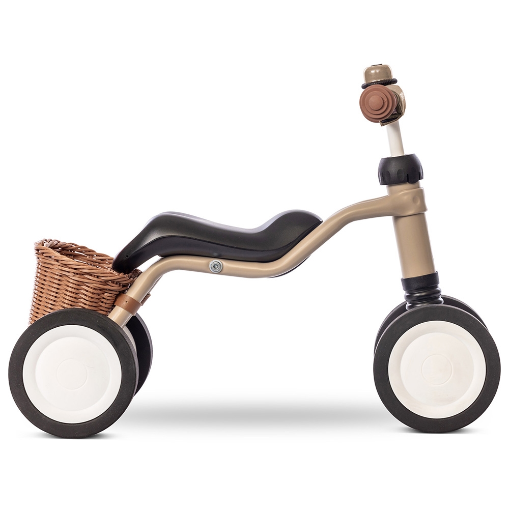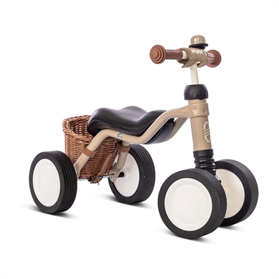 Det ergonomiske sæde og de skidsikre håndtag følger barnets naturlige bevægelser og styrker både ryg og ben. Den kan bruges både inde og ude, og hjulene skåner gulve og giver rolig, behagelig kørsel.